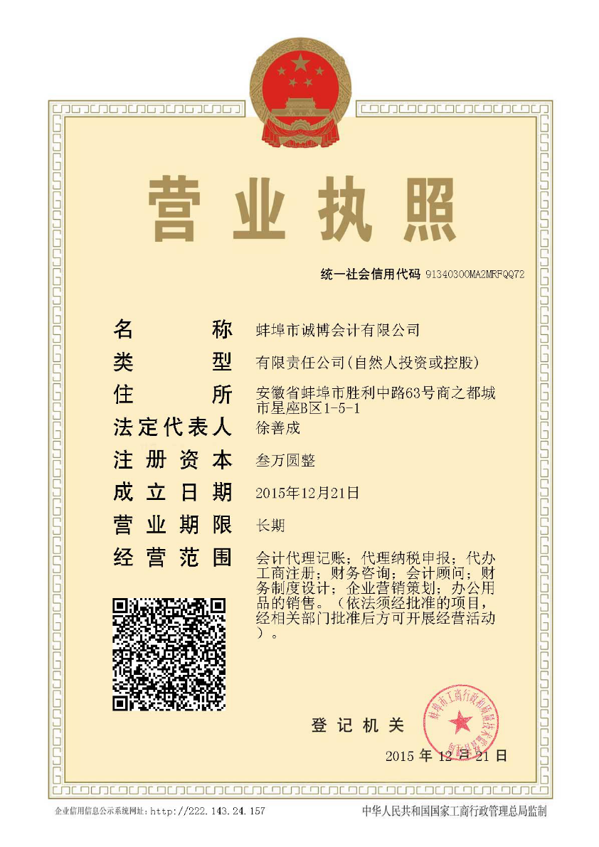 蚌埠市誠(chéng)博會(huì)計(jì)有限公司是一家創(chuàng)業(yè)專(zhuān)業(yè)服務(wù)公司,主要為中小企業(yè)及新創(chuàng)業(yè)者提供代理(代辦)注冊(cè)公司,代辦公司變更、代理記賬、稅務(wù)代辦、建賬建制、管理咨詢(xún)、代辦項(xiàng)目申報(bào)等專(zhuān)業(yè)會(huì)計(jì)服務(wù)。 門(mén)清路熟,資源豐富,專(zhuān)業(yè)專(zhuān)注,客戶(hù)至上,致力于為客戶(hù)節(jié)省時(shí)間成本!規(guī)避運(yùn)營(yíng)風(fēng)險(xiǎn)!緊握發(fā)展良機(jī)! 我公司執(zhí)業(yè)人員具有較豐富的從業(yè)經(jīng)歷,從國(guó)有上市大公司到民營(yíng)中小微企業(yè),涉足多領(lǐng)域多行業(yè),財(cái)稅理論知識(shí)和實(shí)戰(zhàn)經(jīng)驗(yàn)非常豐富,為中小企業(yè)規(guī)范財(cái)務(wù)、籌劃稅務(wù)、整合業(yè)務(wù)管理提供成套實(shí)施方案;同時(shí),熟悉政府最新的各項(xiàng)產(chǎn)業(yè)發(fā)展與項(xiàng)目扶持政策、為中小企業(yè)提供各種政府補(bǔ)貼項(xiàng)目的申報(bào)服務(wù),從前期咨詢(xún)、輔導(dǎo)到材料準(zhǔn)備,以及過(guò)程跟蹤與項(xiàng)目審計(jì)、驗(yàn)收均可提供保姆式服務(wù)。 公司秉承 “至誠(chéng)共贏(yíng)”的經(jīng)營(yíng)理念!快速提升客戶(hù)價(jià)值是我們永續(xù)的追求! 我們將以專(zhuān)業(yè)...更多>
